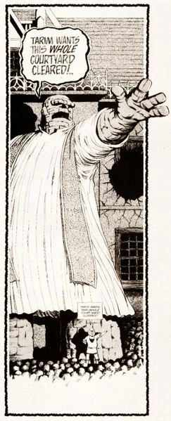 Later, after Cerebus had been named Pope of the Eastern Church, Thrunk arrived and declared himself the embodiment of Tarim, temporarily replacing Cerebus as "Most Holy".[2] Cerebus eventually destroyed him with the use of Adam Weisshaupt's canons.[3]